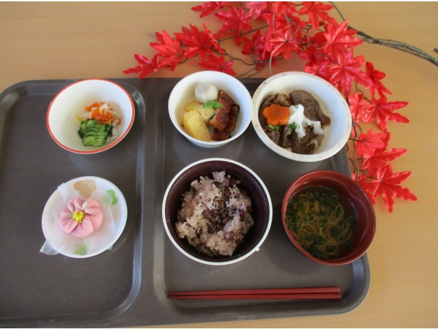 - 赤飯もあり、お祝いムード満点の食事でした。