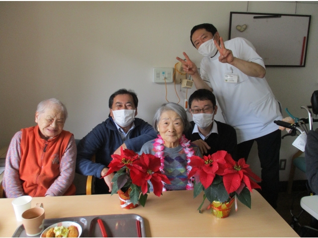 12月8日水曜日の昼食前に、今月生まれの方のお誕生会を行いました。