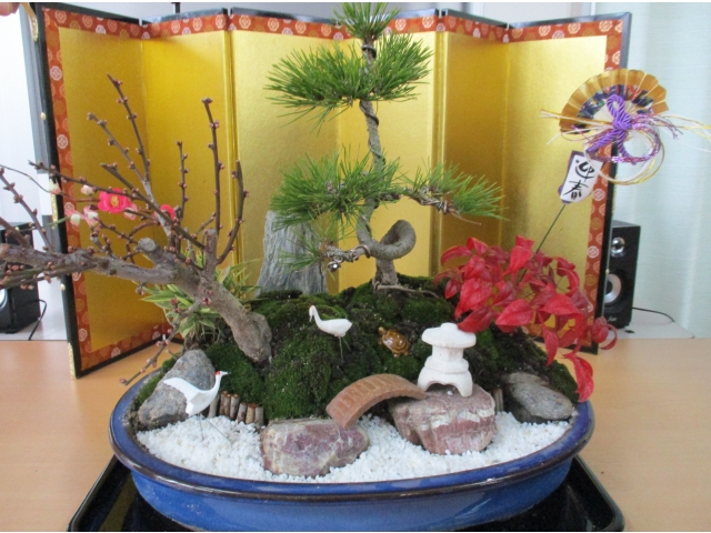 12月も中旬になり、年末年始が近づいてきた事を実感してきました。いつもお世話になっているシルバー人材センターの人から“松竹梅盆飾り”をいただきました。松・竹・梅と苔や鶴と亀の置物など縁起の良い寄せ植えのようになっていました。