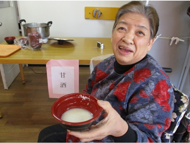 - おみくじを引いた後、甘酒を楽しまれました。