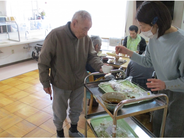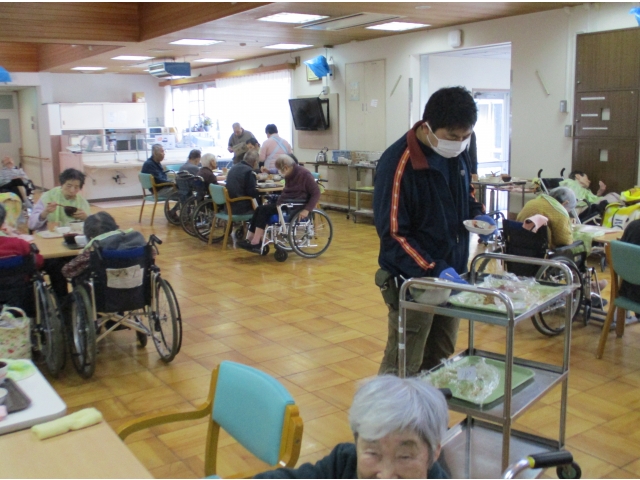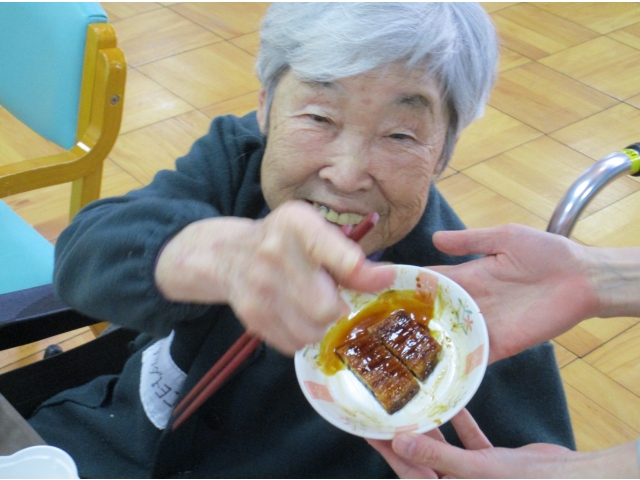 1/26日(水)昼食に冬の土用丑にちなみ、うなぎをいただきました。冬の寒さが厳しいこの時期に、寒さに負けないよう栄養をつけていただきました。うなぎは、冬の時期のほうが脂がのっておいしいそうです。 今回は、少し奮発をしてうなぎの「おかわり隊」を行いました。利用者さんにうなぎは好評で、たくさんの方におかわりしていただきました。皆さんに喜んでいただき、良かったです。