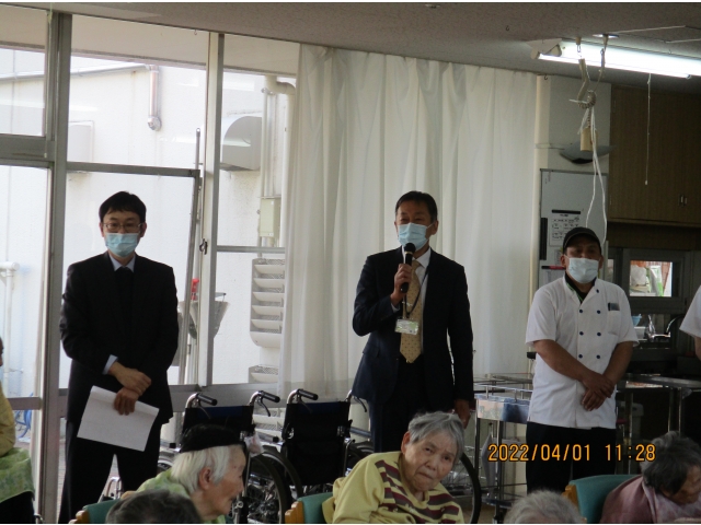 春は出会いと別れの季節です。4月1日11時15分から、今日から大府苑に転入した職員の紹介と挨拶がありました。