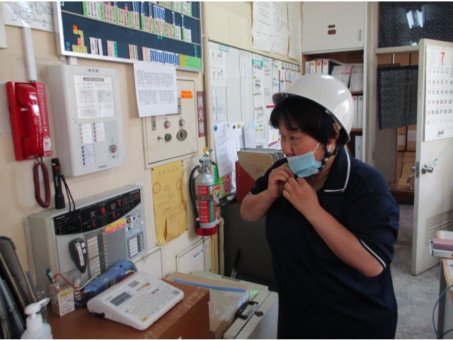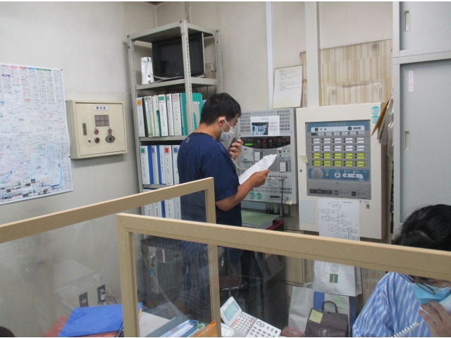 7月13日午後2時30分から、夜間等における自衛消防活動の初動体制について、防災訓練を行いました。