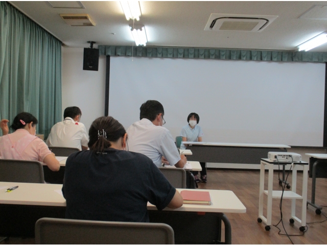 7月27日午後3時30分から、看護師による褥瘡予防についての職場研修がありました。 はじめに人の身体後面の図に、褥瘡になりやすい部分に〇をつけ、順番に発表し褥瘡好発部位を確認しました。 その後、動画で褥瘡の発生原因や予防方法について学びました。今後も業務に活かしていきたいと思います。