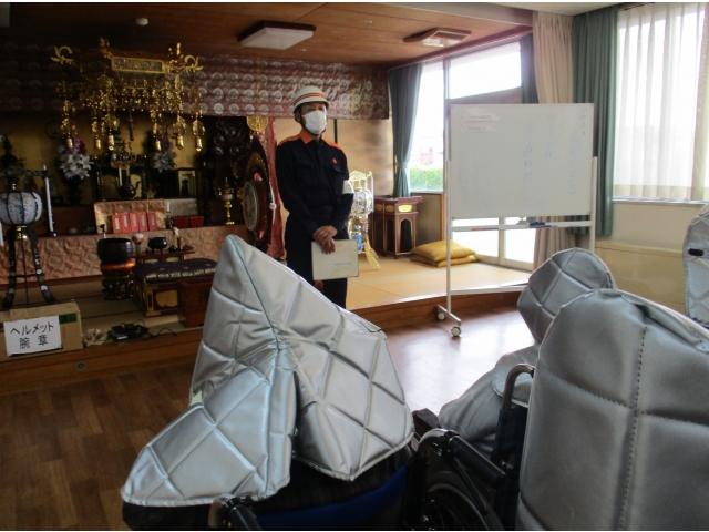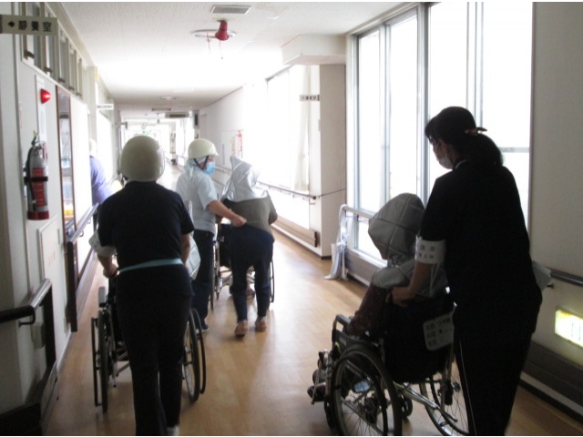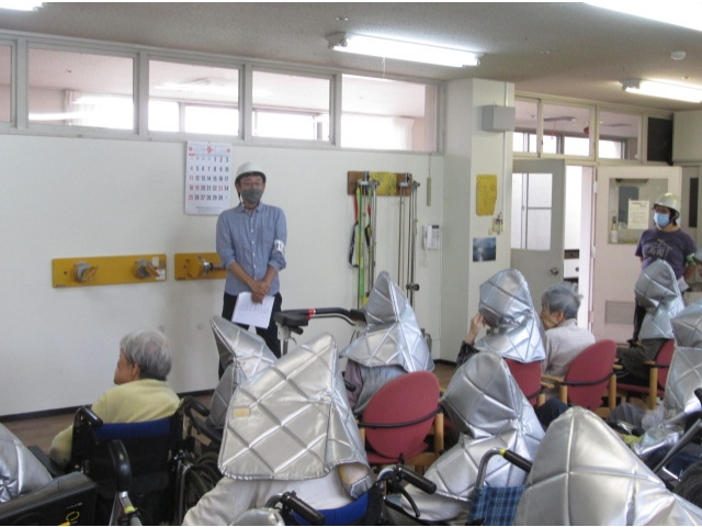 - 防災頭巾を被り、利用者様に声を掛けながら避難誘導を行いました。