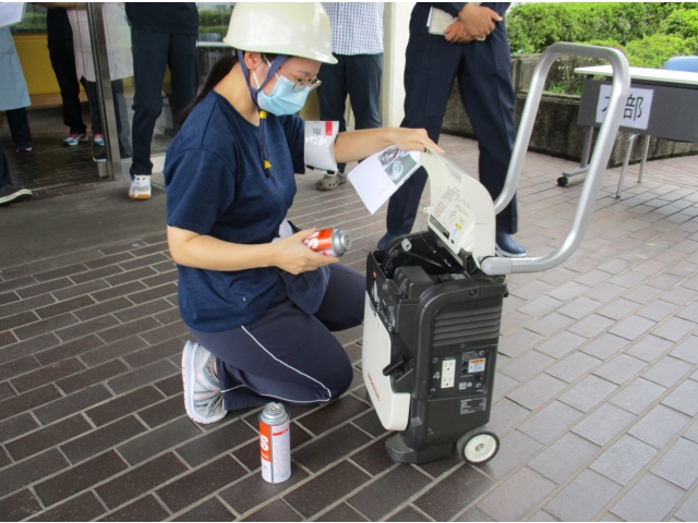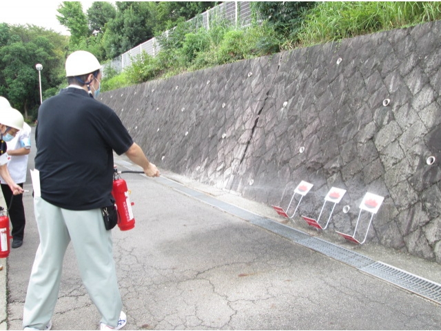 - 訓練用の水消火器を使用し、消火活動も行いました。