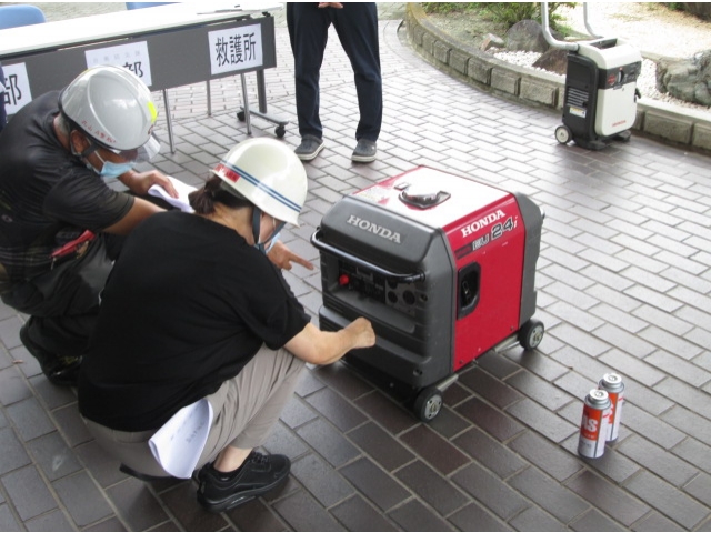- 少し大きめのポータブル発電機も実際に使用方法の講習後使用してみました。