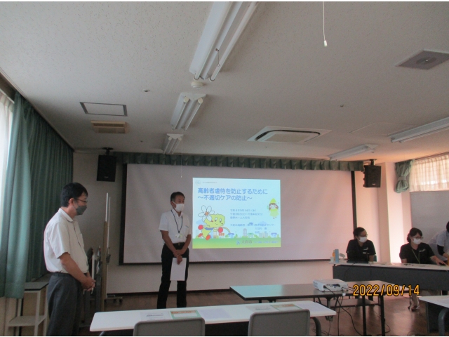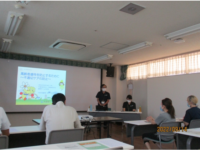 9月14日午後3時30分から、大府市高齢者・障がい者虐待防止センターから講師をお招きして“高齢者虐待を防止するために~不適切ケアの防止~”というテーマで研修を行いました。