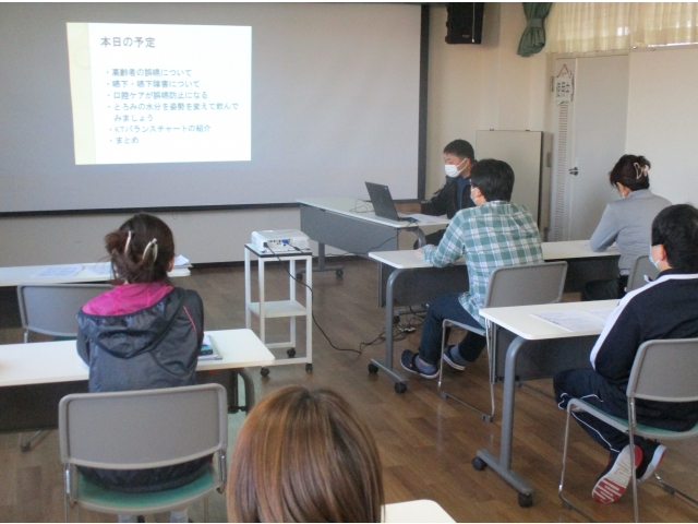 後半は、機能訓練指導員から、口腔ケアや誤嚥性肺炎と、KTバランスチャートについて説明がありました。