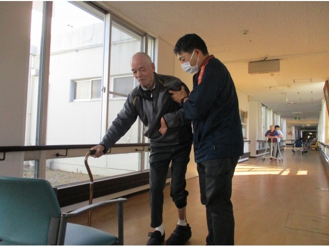 今日は特にお天気も良く、苑庭を回る歩行訓練を終えた方も「今日はちょうどいい気温だよ」と教えてくださいました。