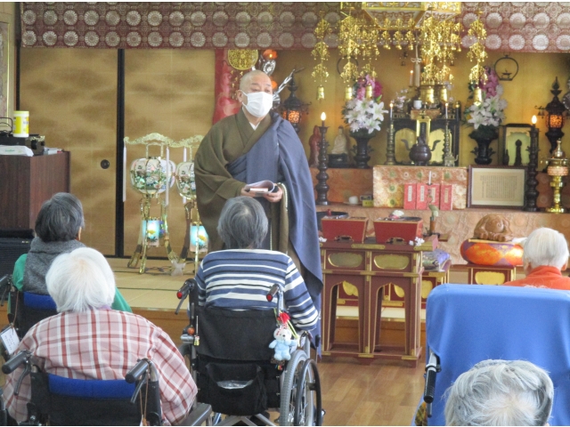 お経を聞きながら、職員と利用者様が順番にお参りとお焼香をしました。
