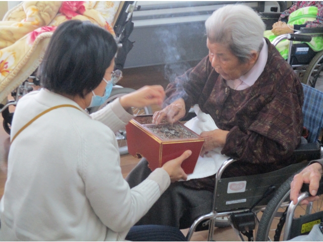 - ご利用者様が順番に、手を合わせてお焼香をしました。