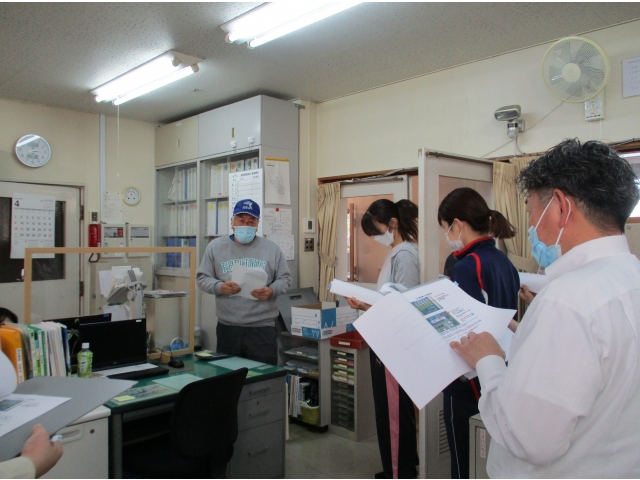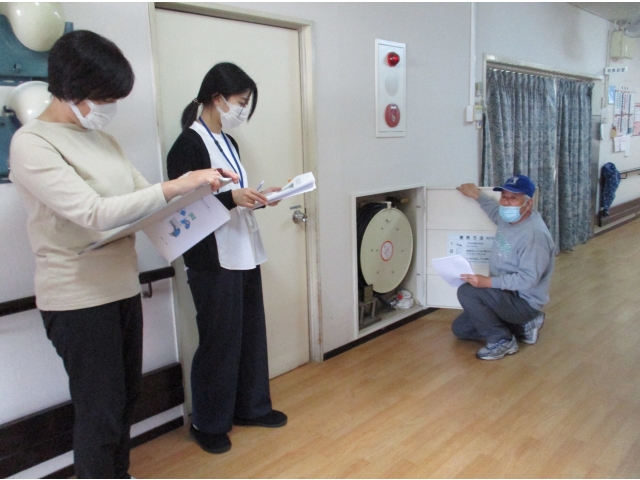 4月1日午後3時から、転入者を対象とした防災教育を行いました。 アサヒファシリティズの方の説明で、消防設備の取り扱いについて、火災報知機の場所や非常放送設備の操作方法、消火栓の位置などを確認しました。