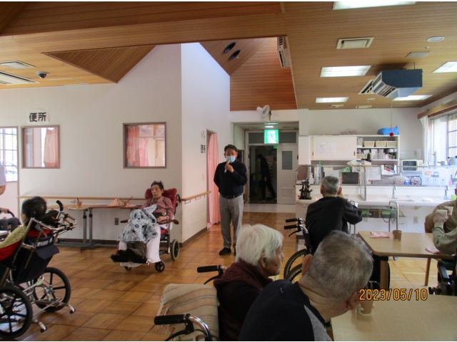 5月10日水曜日11時20分から、今月生まれの利用者様をお祝いする誕生会を行いました。