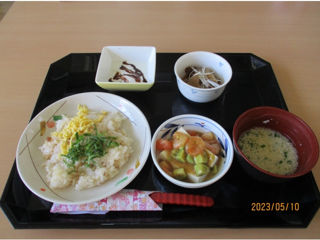 - 本日は、てこね寿司、かき玉汁、牛すじ煮込み、豆腐サラダ、チョコバナナヨーグルトでした、