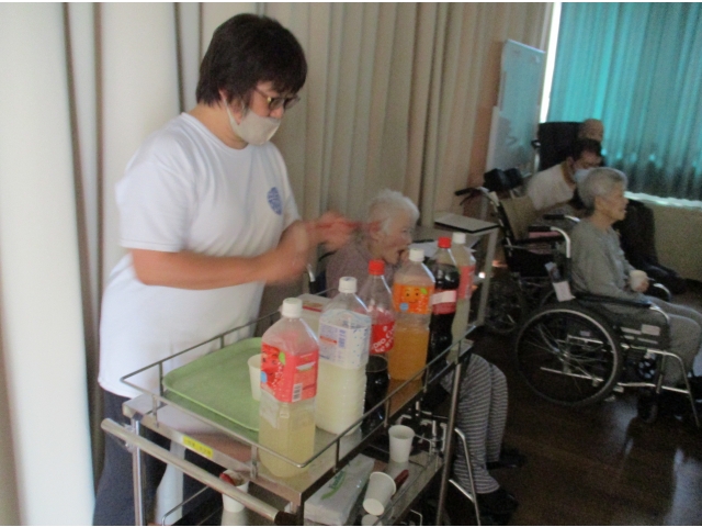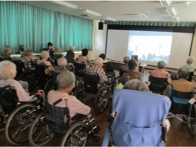 6月21日水曜日に午前10時から一般棟、午後3時30分ごろから南棟と2回に分けて映画会を行いました。 映画は“8時だよ、全員集合”を鑑賞しました。 上映中に、お好きなジュースを提供し、利用者様からは懐かしいという言葉や、コントを見ながら笑い声も聞かれました。