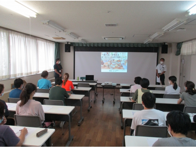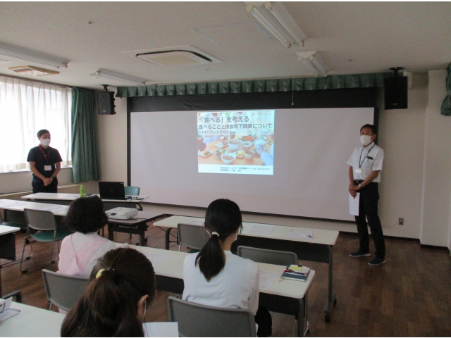 普段の業務で、利用者様に食事を安全に食べていただきたいと思っていますが、嚥下機能の低下や嚥下障害が見られる方もみえます。嚥下障害も飲み込む機能だけではなく、脳卒中や呼吸器疾患などの既往からくるもの、アルツハイマー病などの進行する疾患や認知機能の低下、歯の欠損や加齢、筋力低下など様々な要因があり、包括的な視点が大切であると学びました。