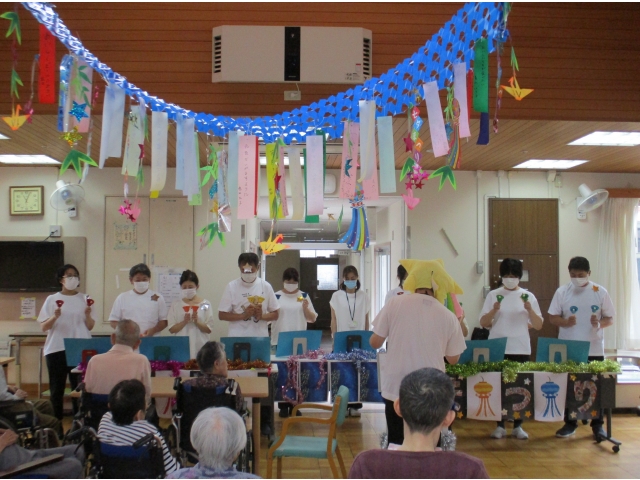 今年も七夕を盛り上げようと、職員によるハンドベルの演奏会を開催しました。