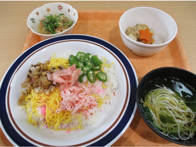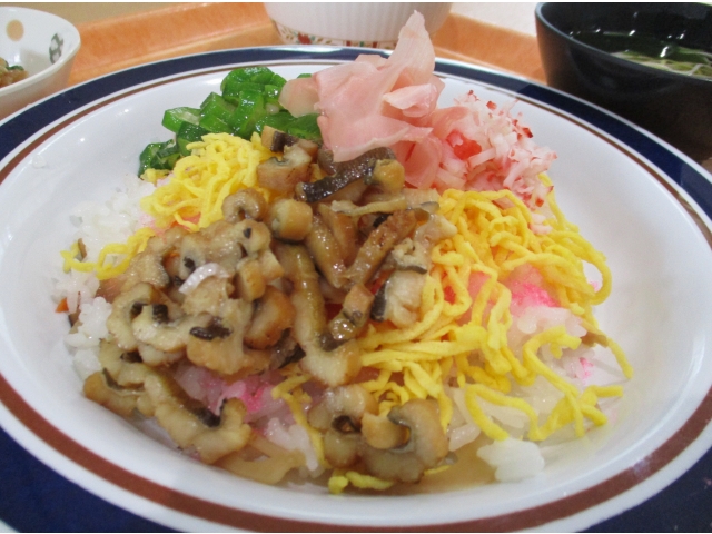 演奏後は、ご利用者様の書いた素敵な短冊を皆さんに紹介しました。また栄養士から七夕の特別献立を紹介をし、ハンドベルの余韻が残る中でおいしいお食事を楽しんでいただきました。