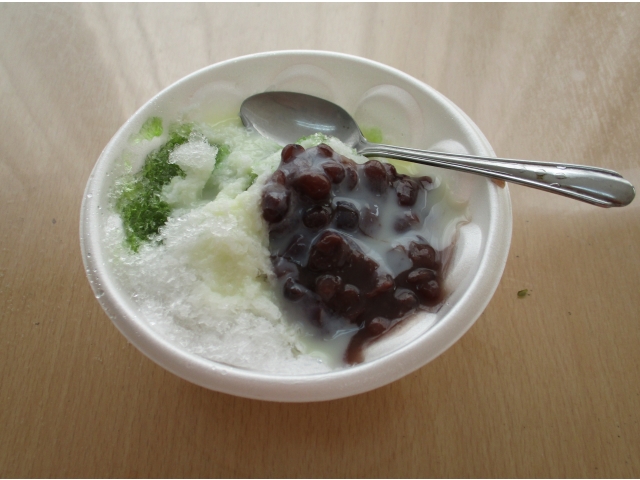 - 抹茶につぶあんがたくさん乗った特製のかき氷です。