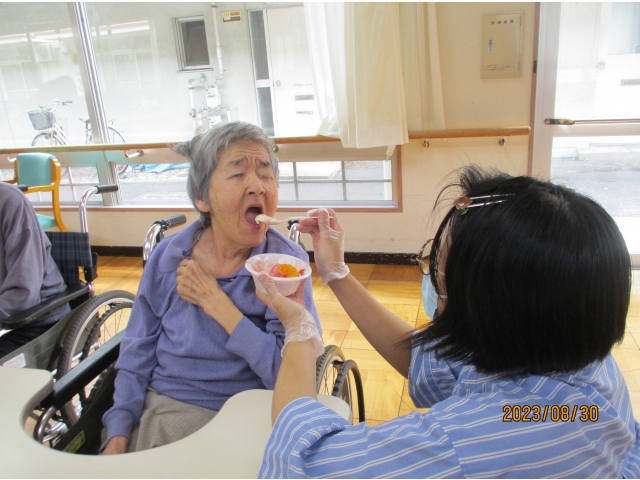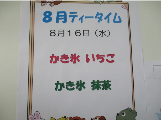 8月16日と30日の2回に分けて、ティータイムの時間にかき氷を楽しみました。