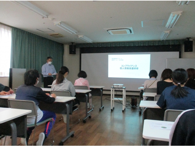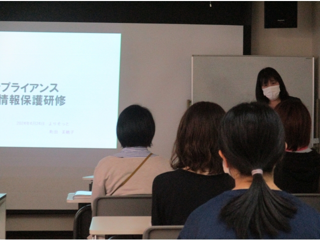 4月24日午後3時から、よりそっとの方を講師にお招きして、「コンプライアンス・個人情報保護」の職場研修を行いました。