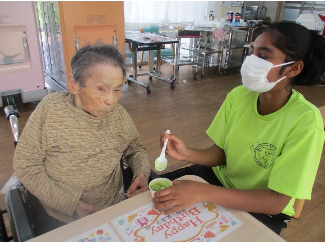 8月21日22日の2日間にかけて、8月のティータイムとして、かき氷を行いました。 いちご、レモン、抹茶の3種類のかき氷かアイスクリームを召し上がり、まだまだ暑い日が続く中、暑さを乗り切っていきたいと思いました。