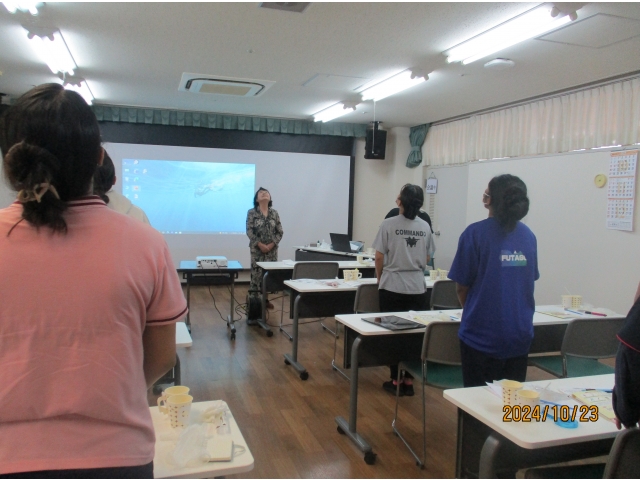 10月23日(水)午後2時30分から、愛知県歯科医師会在宅歯科医療連携室 歯科衛生士の久田せつ子様を講師にお招きして、「口腔ケアについて」職場研修を行いました。