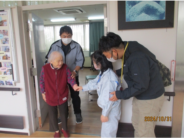 ご利用者様の朝の日課であるお参りの準備や片付け、清掃など、懸命に取り組む姿が印象的でした。実習生の元気な挨拶に利用者の皆さんも元気をもらいました。