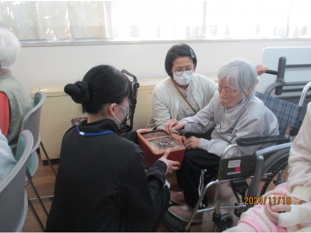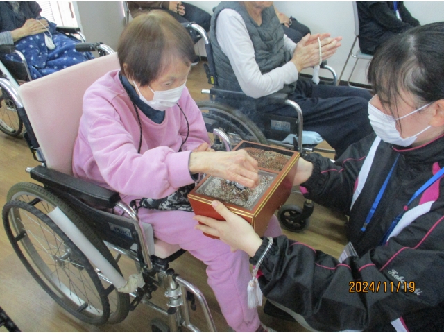 その後、相談員が寒くなってきたので、手足が温まるように、座って行える体操を行い終了となりました。