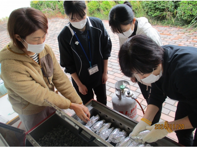 - 実習生と管理栄養士で、焼き芋の準備をしました。