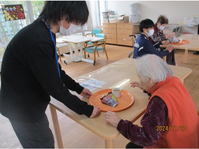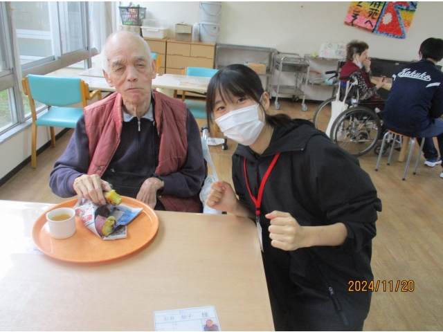 実習生さんや職員と会話しながら、秋の味覚を召し上がり、身も心も温かくなりました。