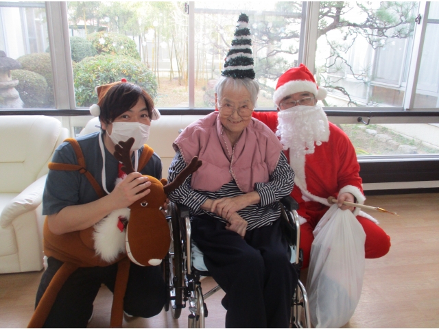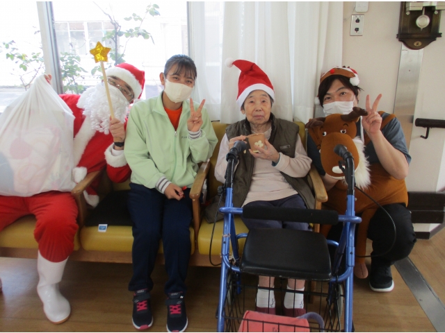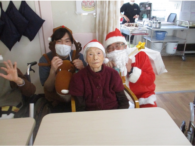 昼からは個別にサンタさんとトナカイさんがご利用者様のところへ訪問し、一緒に写真撮影を行いました。