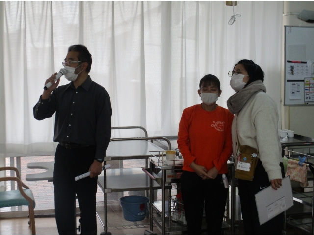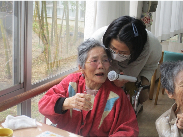 相談員の司会進行で、苑長から祝辞がありました。誕生者を紹介後、乾杯と拍手でお祝いしました。