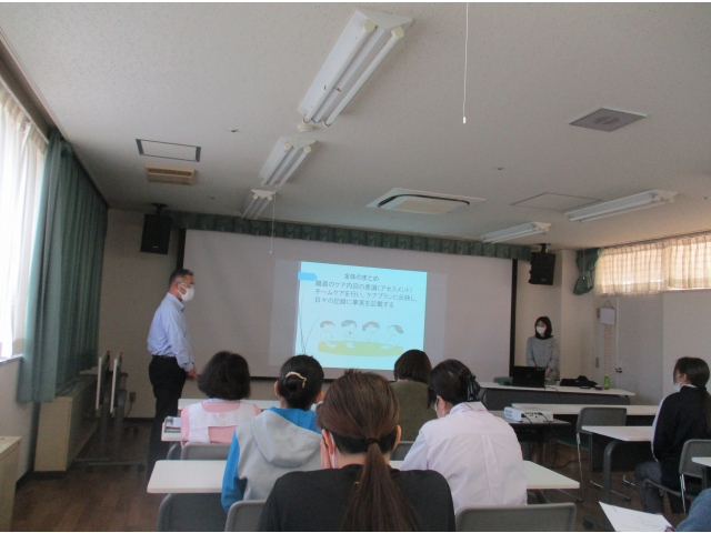 具体的なケースなども話し合いながら、チームケアを行い、ケアプランを反映して日々の記録に事実を記載することが大切だと学びました。