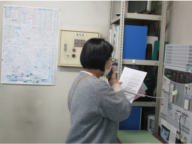その後、消火器やホースを使った初期消火訓練のあと、消防署に通報する通報連絡訓練を行いました。