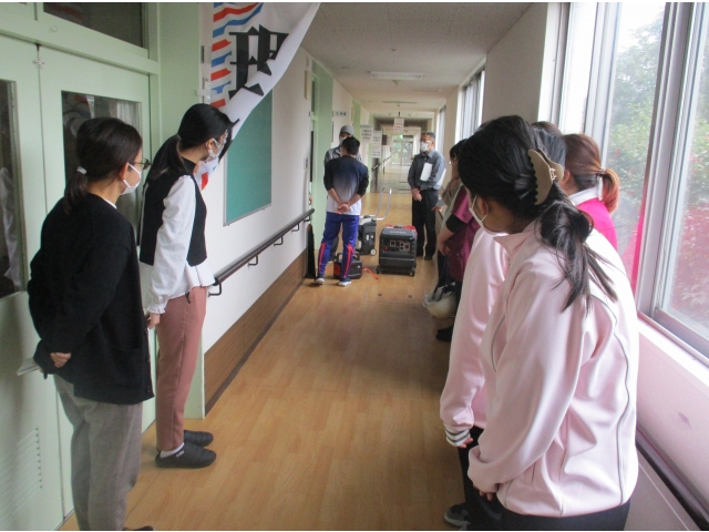 当日は雨天により、室内で行ったため、実際に発電することはありませんでしたが、ガスボンベの予備やソーラー充電ができる発電機など、技能実習生も含め使い方や、保管場所を再確認することができました。