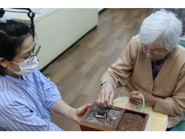 - 職員がお手伝いしながらお焼香をあげます🤌💨