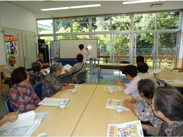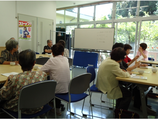 岡崎苑では昨年度から、地域貢献活動の一環として高齢者ケア講座に職員を派遣しており、今年度は認知症の方へのケアとして、土屋ケアマネージャーを講師として派遣しました。