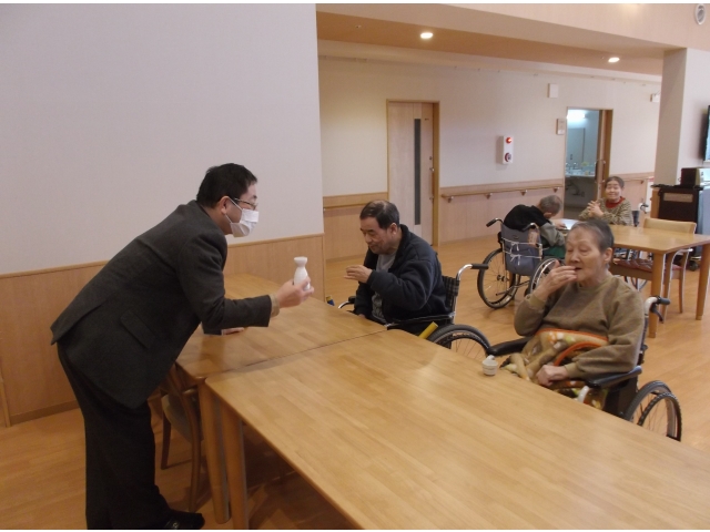 苑長が各ユニットやフロアを回り、新年の挨拶とともに