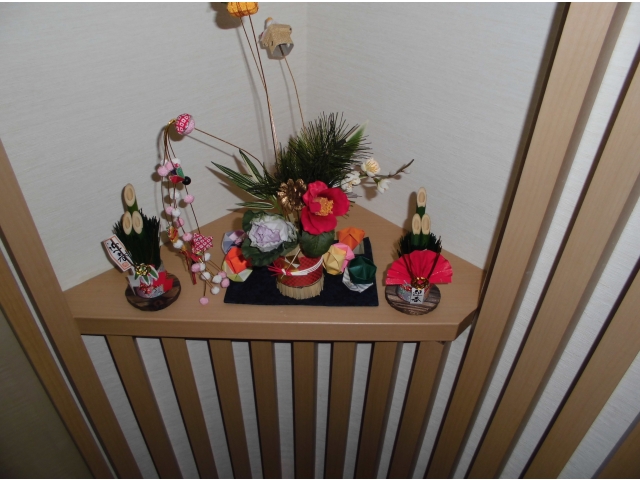 それぞれの玄関も正月のしつらえを行い、施設での生活の中において