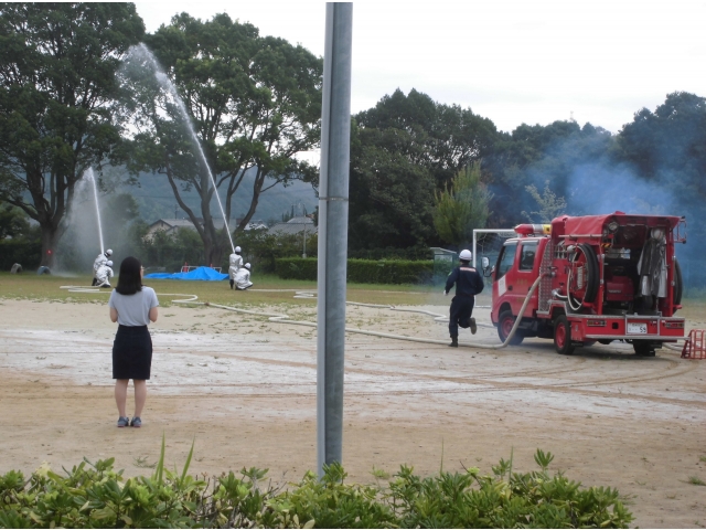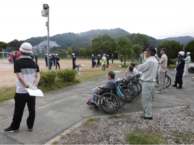 避難訓練の後、下に竜谷小学校で行われていた地域の避難訓練に