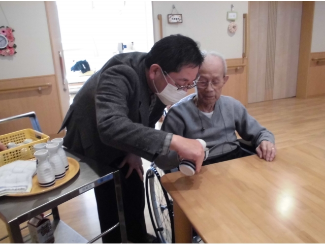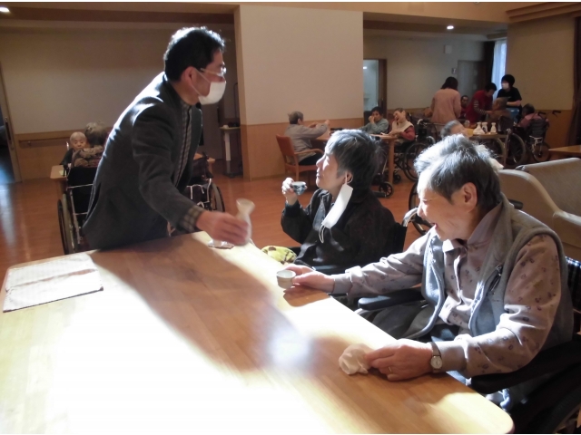 岡崎苑では例年どおり、元旦に苑長や相談員、介護主査が