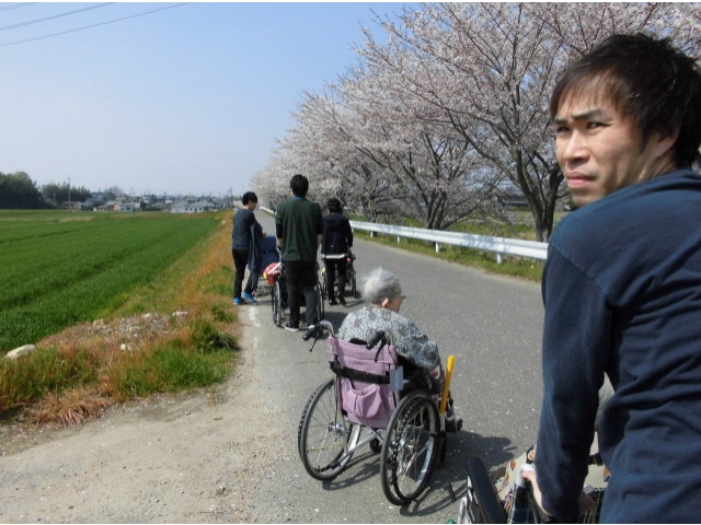 ホームページの更新が大変遅くなり、申し訳ありませんでした。4月14日、岡崎苑のユニット、フロアの利用者様たちとお花見外出に行ってきました。