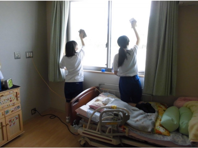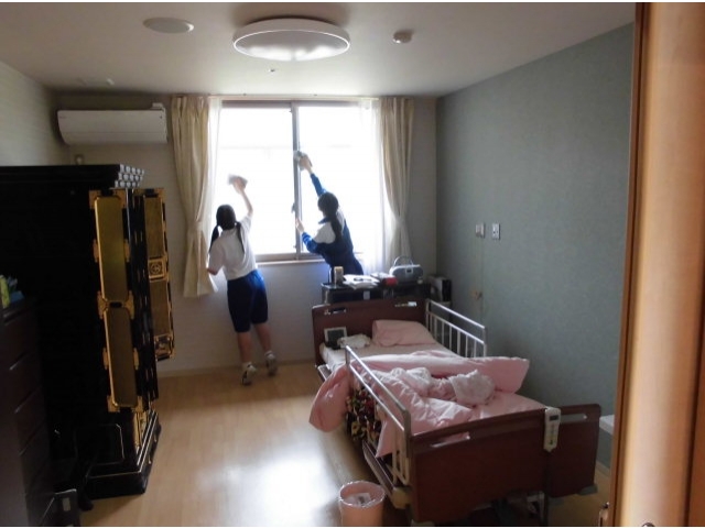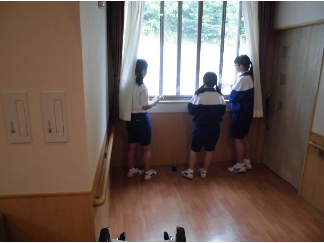 光ヶ丘女子校の生徒さんで窓ふきをして頂いて苑内をピッカピカにしてくれました。普段手の届かないところも綺麗にして頂いてありがとうございます。
