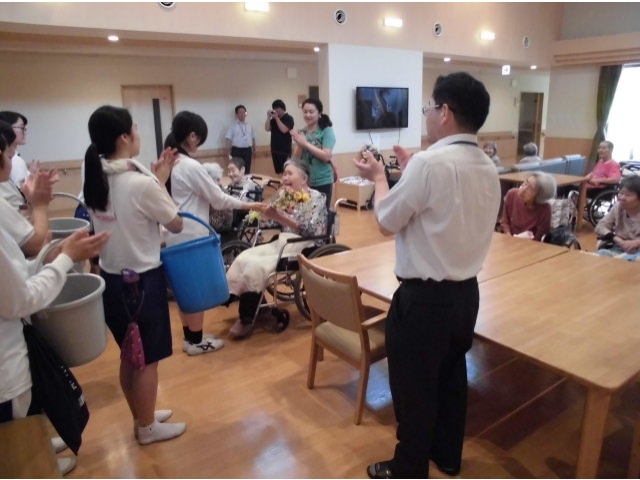 お花もいただき、さらに合唱も披露していただきありがとうございました。みなさんとても感動して中には涙ぐむ方も・・・若く可愛いパワーをもらいますます元気に過ごしていけるような気がします。 愛厚ホーム 岡崎苑
