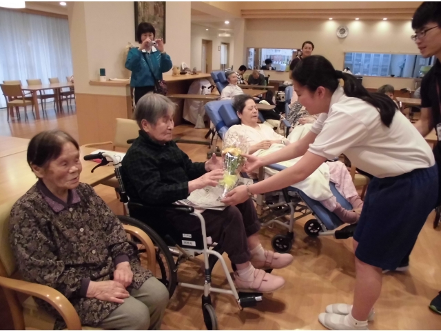 利用者の皆さんとも話をして、最後には花束をいただきました。