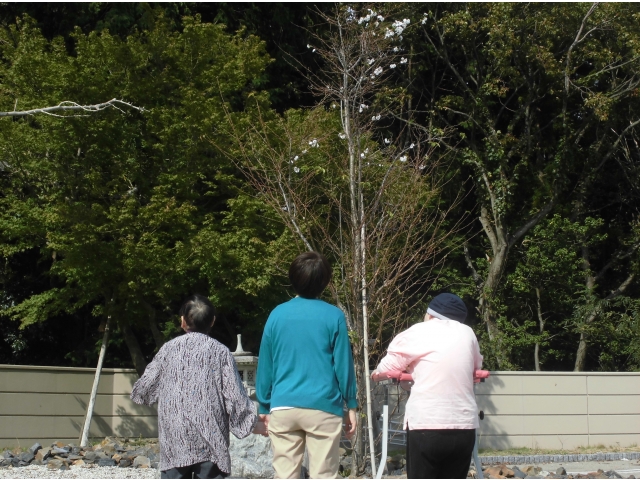 入居者と一緒に散歩に出掛けながら、お花見しました!!