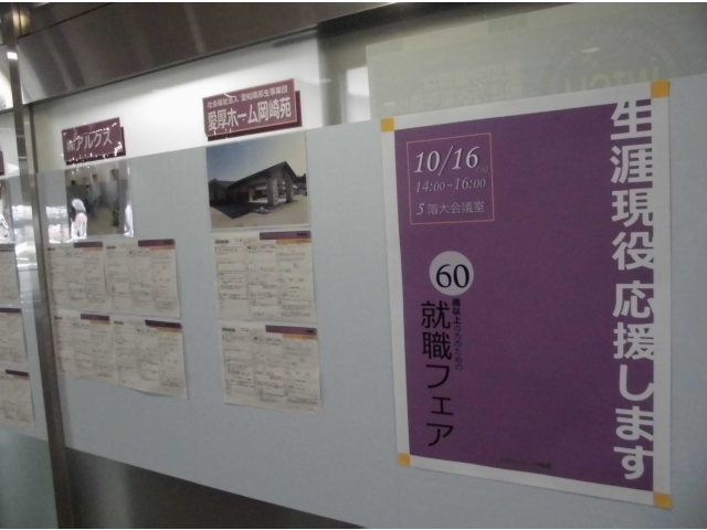 愛厚ホーム岡崎苑では、60歳以上の方の労働力を活用させていただきたいと考えており、今回岡崎公共職業安定所主催で開催された「60歳以上の方のための就職フェア」に参加させていただきました。