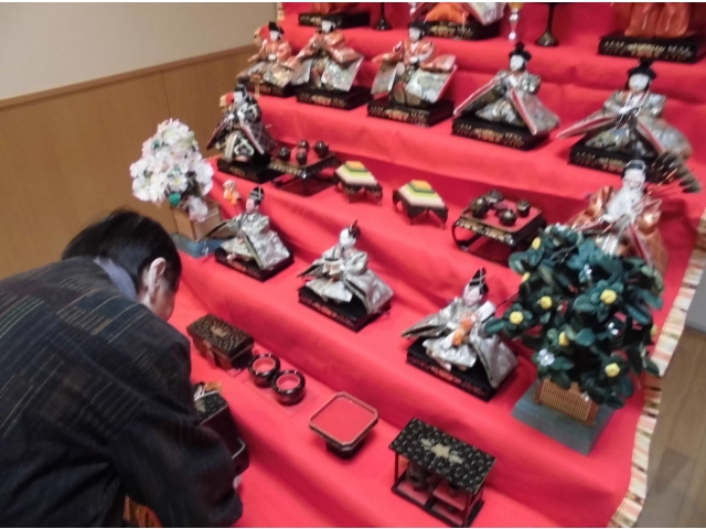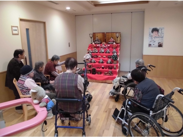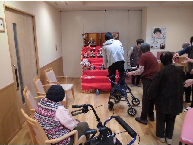 ということで、入所者のみなさんに手伝ってもらいお雛様を飾ることにしました。
